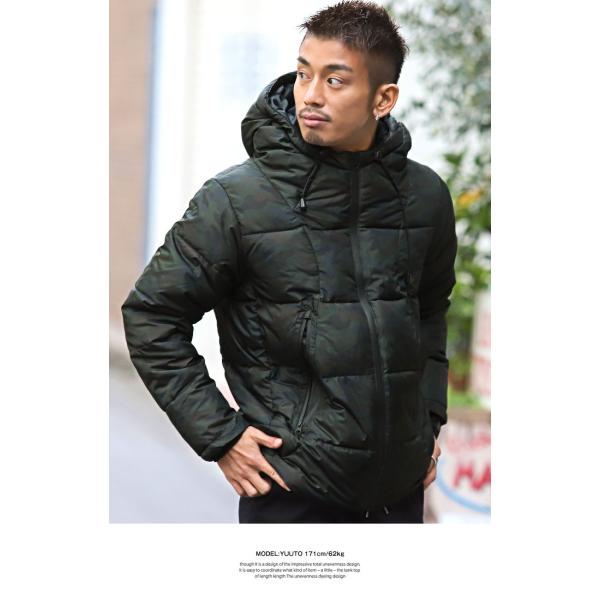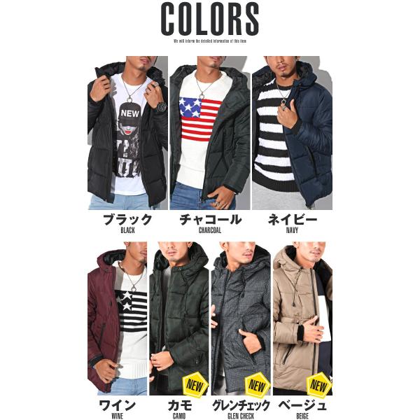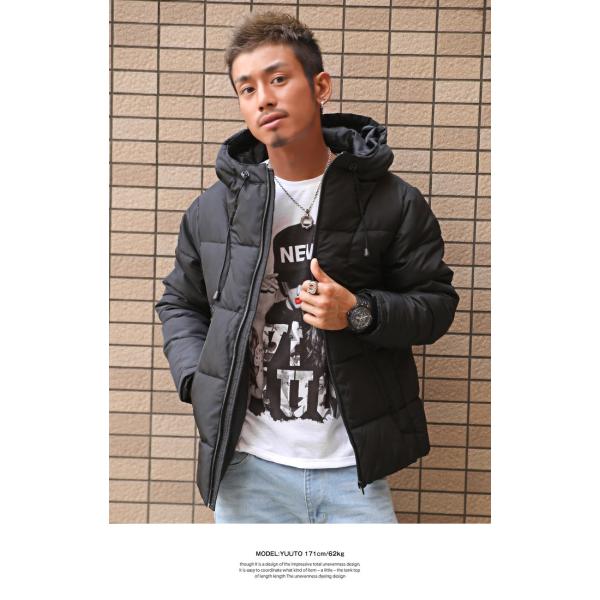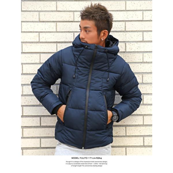 中綿ジャケット メンズ ブルゾン ジャンパー ボリュームネック フード 無地 暖か 厚手 秋冬 ビター系