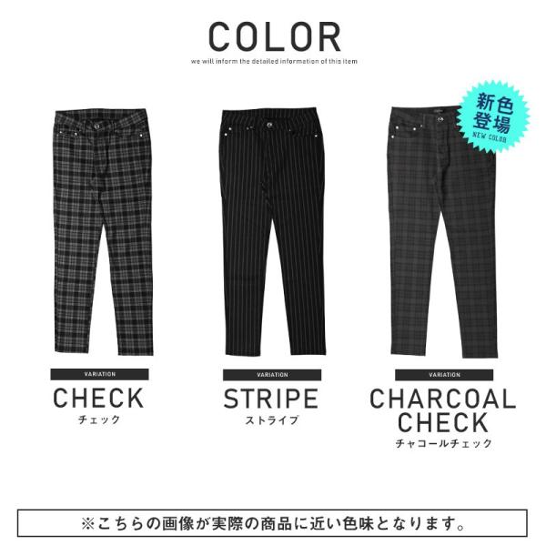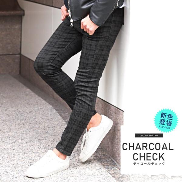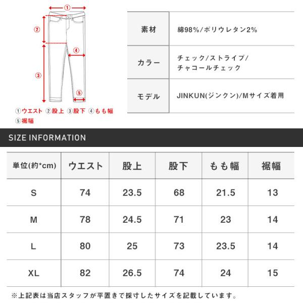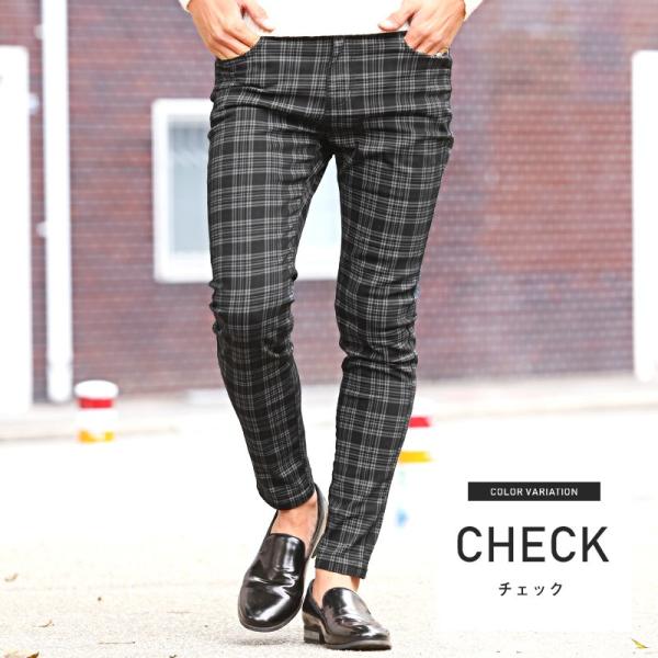 スキニーパンツ メンズ スキニー チェック ストライプ チェックパンツ ストレッチ