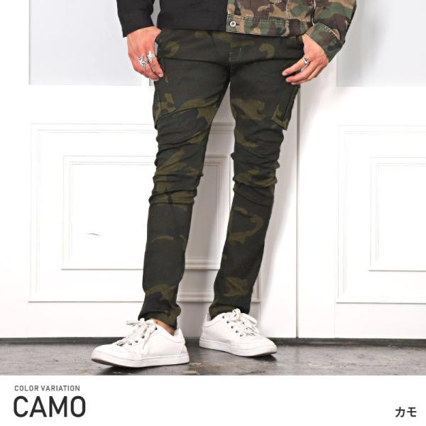 カーゴパンツ メンズ テーパード スリム 迷彩 カモフラ ミリタリー ポケット 細身 ビター系