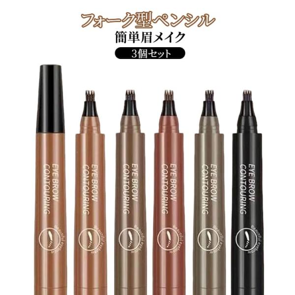 眉ペンシル 眉毛 落ちないアイブロウ フォーク型 4Dリアル眉ティント 眉墨 長持ち 染まる 3個セット 描きやすい 初心者 防水 4Dリアル眉ティン
