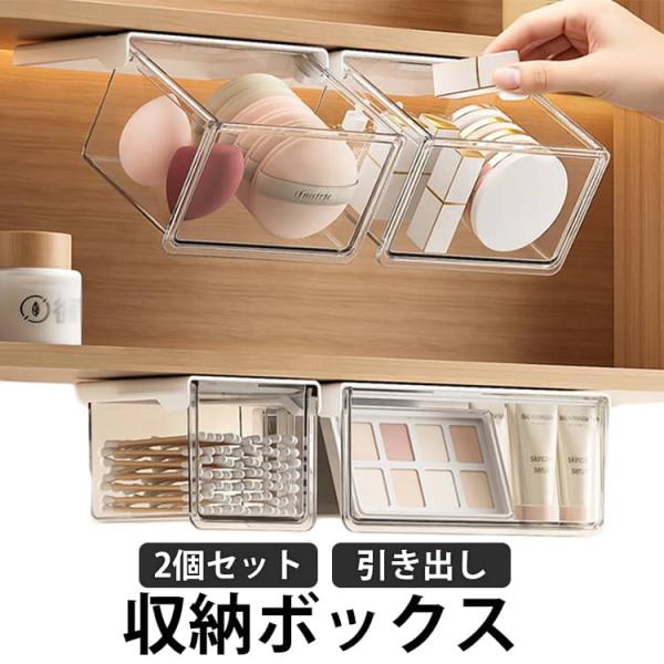 オフィスデスク 引き出し式 透明 収納ボックス シンプル 洗面台 後付け 2個セット 収納 隙間収納 簡単取付 引き出し バスルーム 洗面所 取り付け