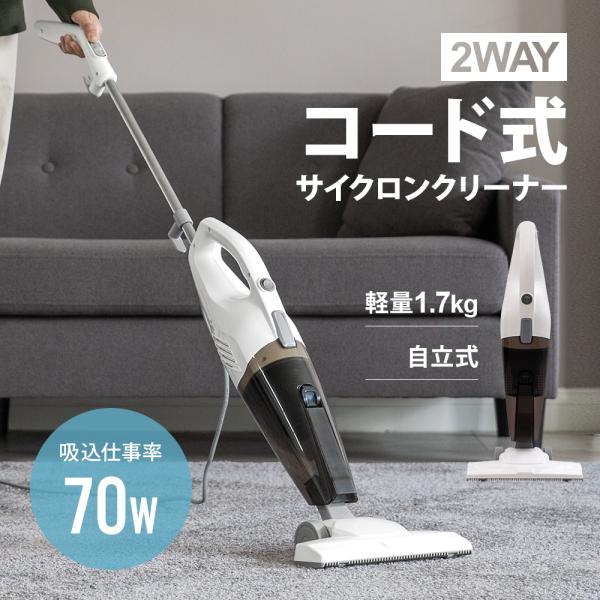 コード式掃除機 自立式 吸込仕事率70W HEPAフィルター 2WAY スティッククリーナー ハンディクリーナー コード掃除機 コード付き サイクロン掃除機 サイクロン式
