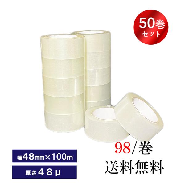 梱包用OPPテープ 50巻 透明テープ 梱包テープ 幅48mm×長さ100m×厚さ48um 50巻入り 業務用 家庭用 梱包資材