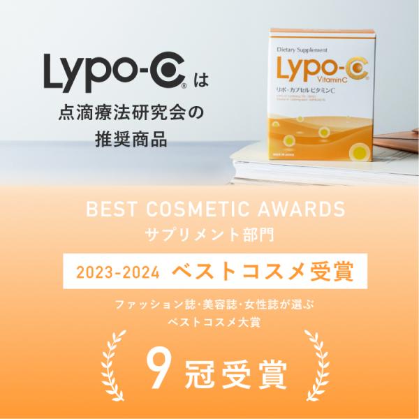 Lypo-C(リポ・カプセル ビタミンC)は、吸収率にこだわった国内製造のリポソーム化された液状のビタミンCサプリメント。 ビタミンCは美容や健康を維持する為には不可欠な栄養素です。そんな優れた栄養素であるビタミンCは、体外へ排出されやすい特徴を持っているため、摂取量より「吸収・浸透量」が大切と言われています。