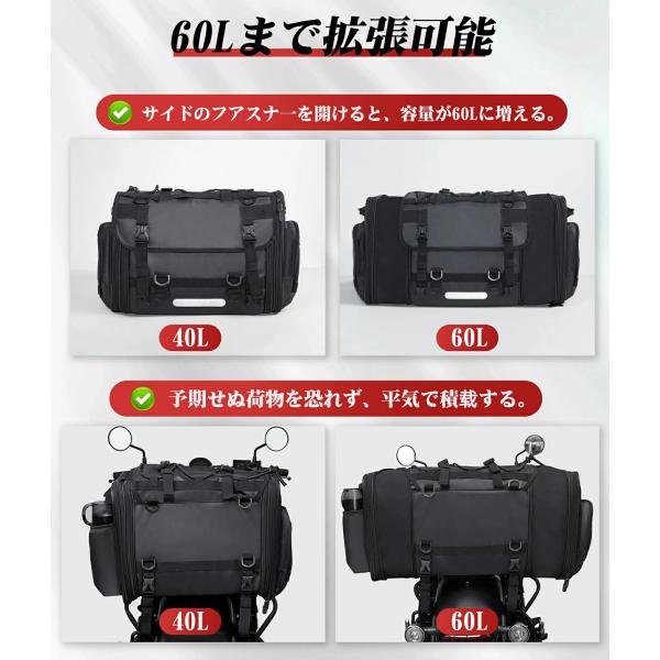 【2025新商品・即納】 シートバッグ リアバッグ バイクシートバッグ 40L大容量 60L大容量 60Lまで拡張バイク用 防水 ツーリング 旅行 プレゼント COVELL