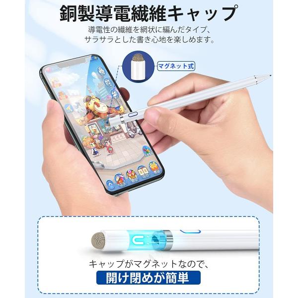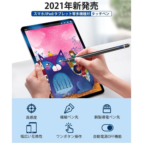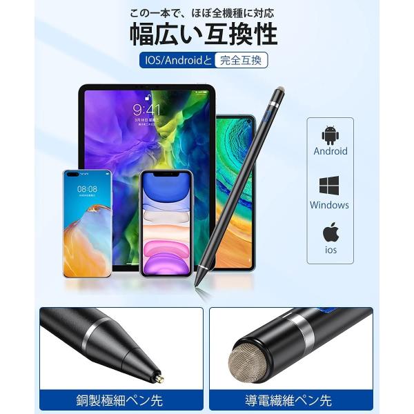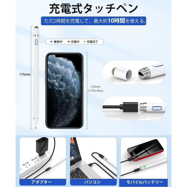 タッチペン iPad iPhone Android対応 極細 高感度 低遅延 USB充電式 軽量 スマホ タブレット対応 全機種対応 スタイラスペン