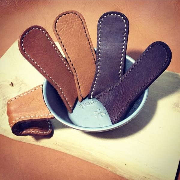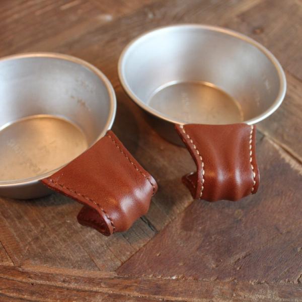 スノーピーク/snow peakシェラカップハンドル用レザーカバーです。キャンプやトレッキング、山登りをされる方でお持ちの方は多いのではないでしょうか?