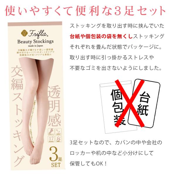人気の日本製ストッキングが3足セット!台紙が無く使いやすい。