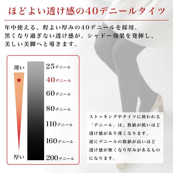 程よい透け感が上品な40デニールの黒色タイツ。
