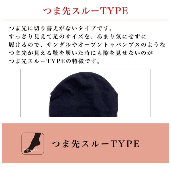 【つま先スルーで足元すっきり】つま先切替のない仕様で、パンプスやオープントゥにも対応。足元まで美しい印象をキープします。