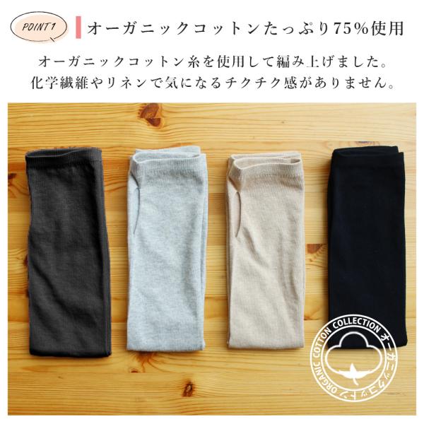 アームカバー レディース uvカット オーガニックコットン 綿 コットン おしゃれ さらさら 指穴あり 日本製 無地 日焼け 涼しい 手の甲 ゆったり ポイント利用