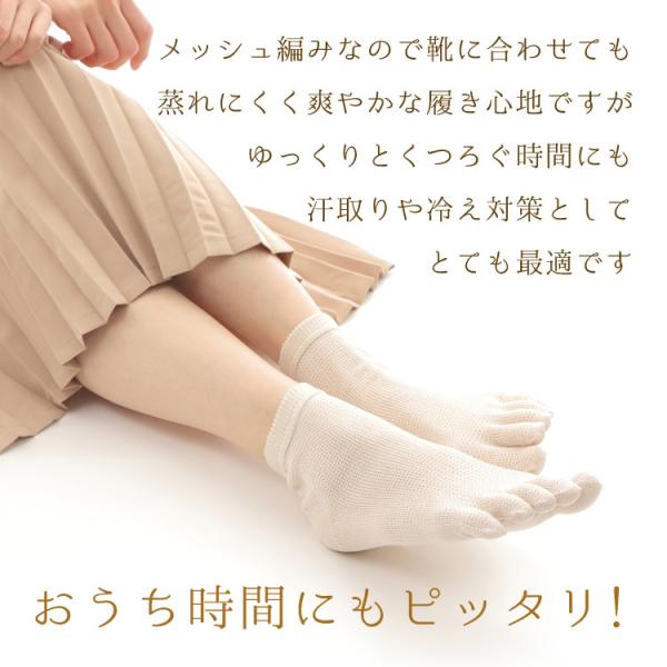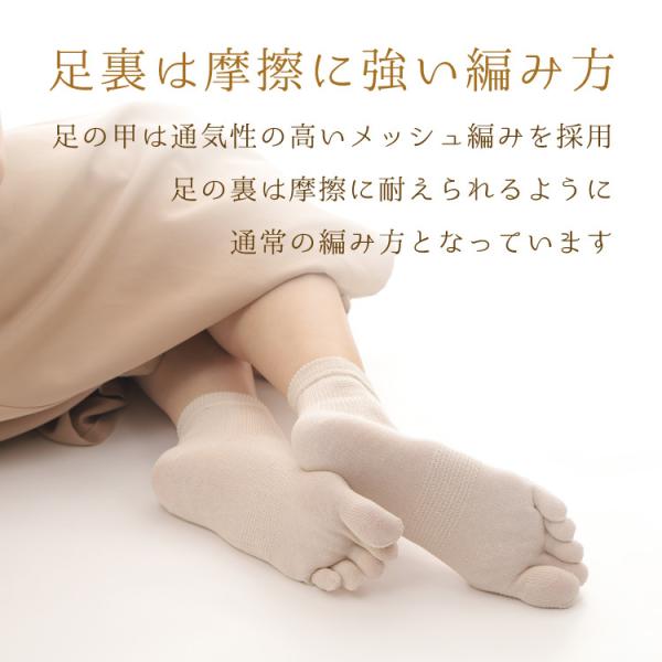通気性の良いメッシュ編みと、なめらかな肌触りがある、素材にこだわったワンランク上の5本指靴下。