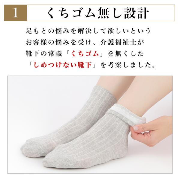 介護福祉士考案のくちゴムが無い楽な履き心地&肌触り良い靴下。