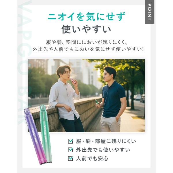 吸う時だけ動くオートパフ機能で、持ち運びも安全。