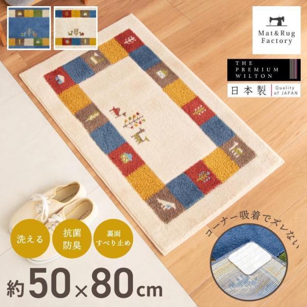 玄関マット おしゃれ 室内 屋内 シエラ 約50×80cm ギャッベ風 コーナー吸着つき 吸着シート 洗える 日本製 ウィルトン織り おしゃれ ギャッベ オカ