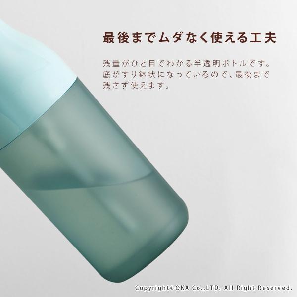 2013年グッドデザイン賞受賞。大きめのヘッドで押しやすく、どんな空間にもマッチするシンプルデザイン。口が広いので、詰め替えしやすく洗いやすいディスペンサーです。こちらはリキッドタイプです。(泡タイプもございます。)半透明のボトルで残量が分かるから便利。容量は約420mlと市販のハンドソープを入れても余裕があるくらいの大容量です。シャンプーやトリートメント、ボディソープの詰め替えにもおすすめです。カラーは8色。絶妙なカラーバリエーションで使い分け用として美しいグラデーションも楽しむことができます。