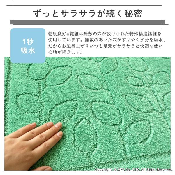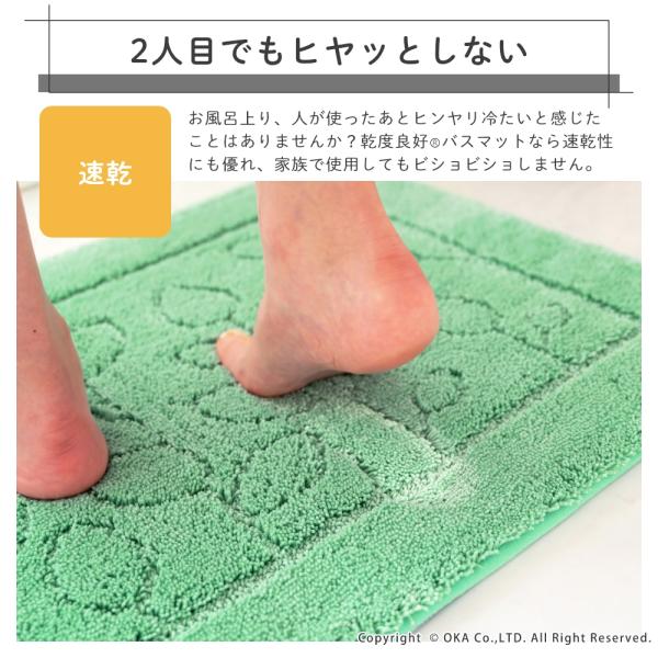 バスマット 足ふきマット 速乾 吸水 乾度良好 ファイン 約35×50cm おしゃれ 風水 お風呂マット 洗える 洗濯可 北欧 無地 滑り止め オカ
