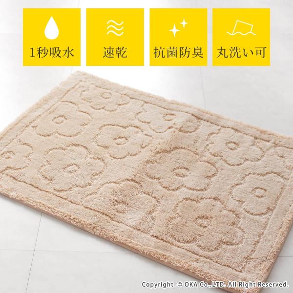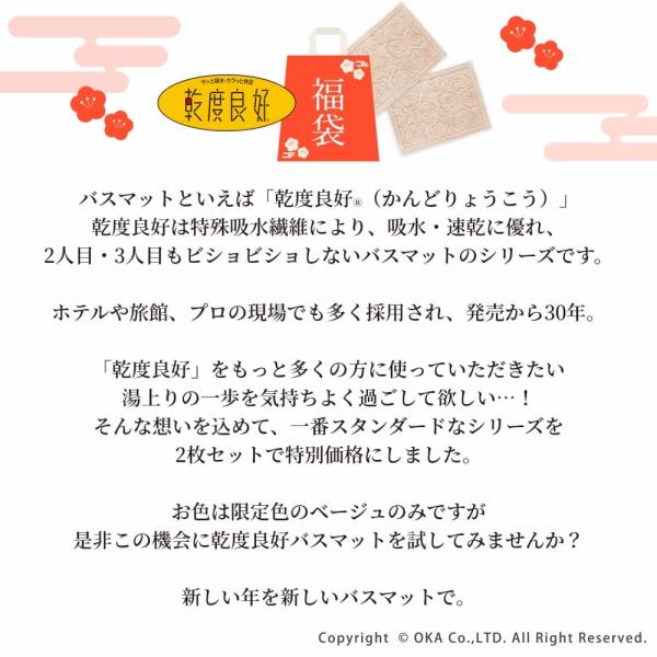 バスマット 2枚セット 福袋 2026 洗える 吸水 速乾 乾度良好 レトロフラワー 約45×60cm おしゃれ ベージュ 洗濯可 布製 お風呂マット オカ