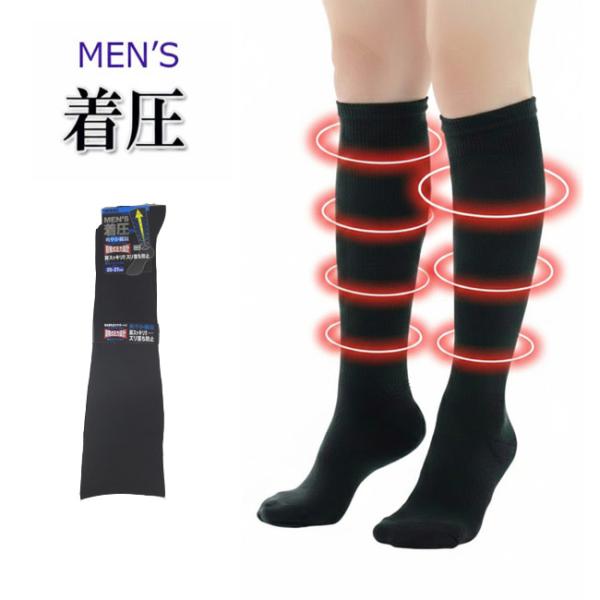 メンズ着圧ハイソックス 黒無地 メンズ靴下 シンプル ビジネスソックス