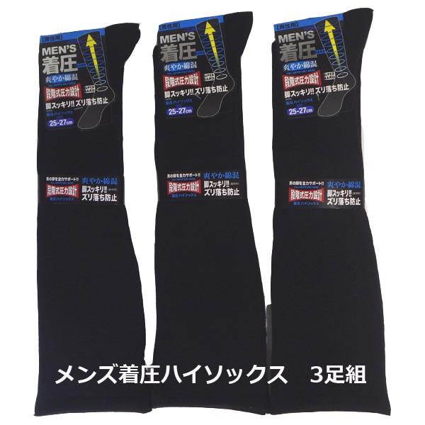 メンズ着圧ハイソックス 3足セット 黒無地 メンズ靴下 シンプル ビジネスソックス