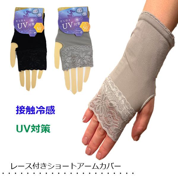 アームカバー レース ショート UVカット 手袋 接触冷感 日焼け防止 無地 フィット 涼しい スマホ操作
