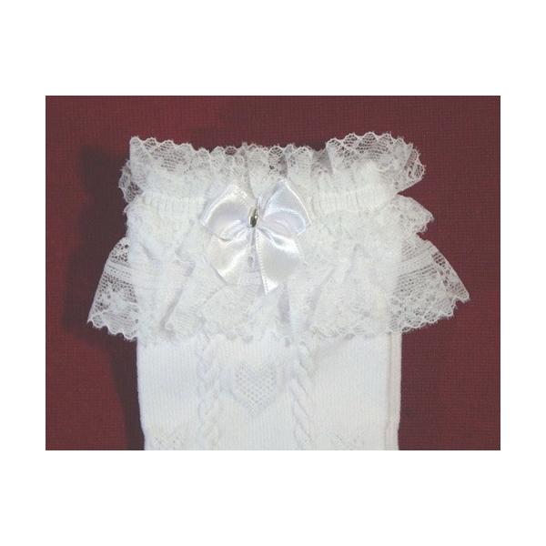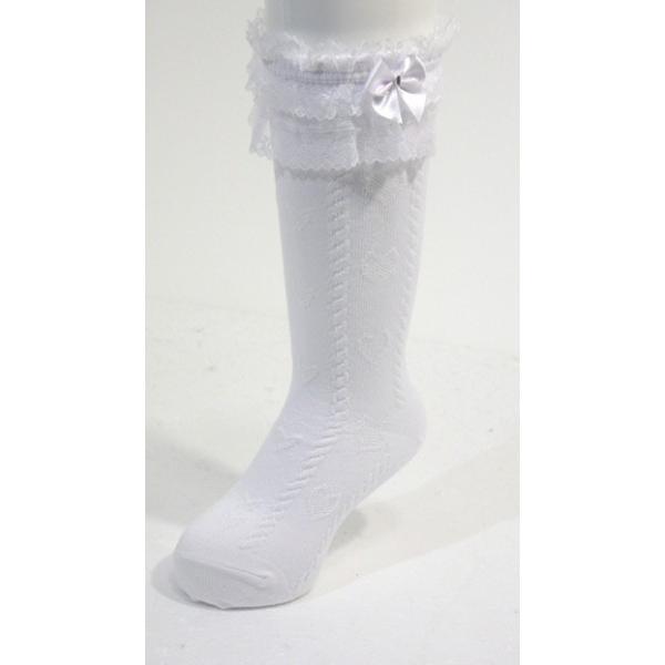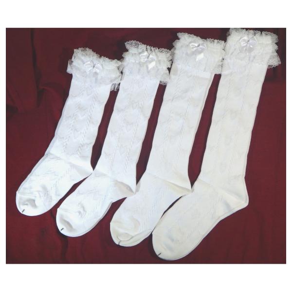 靴下 キッズ レースハイソックス フォーマル レース・ビーズ・リボン付き 女の子