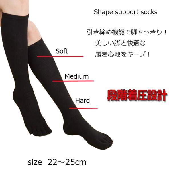 着圧ソックス 5本指 3足セット 黒無地 むくみとり 着圧ハイソックス