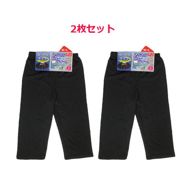さらさら スパッツ 5分丈 2枚セット 涼感 股上深め 黒無地 ひんやり レギンス スカート下 アンダーパンツ