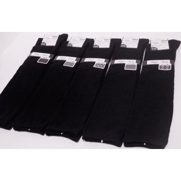 ハイソックス レディース 5足組 黒 36cm丈 平無地 地柄