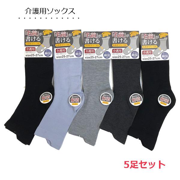 靴下 メンズ 5足組 介護用 ゴムなし 名前が書ける ゆったり クルー丈ソックス 1000円ぽっきり メンズ靴下