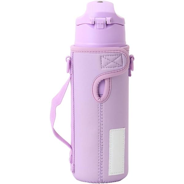 真空二重構造でしっかり冷たさをキープする保冷専用ボトル。ワンタッチオープンで直飲みタイプ。ショルダーストラップ付きカバー+名前スペース付きで使いやすい仕様。