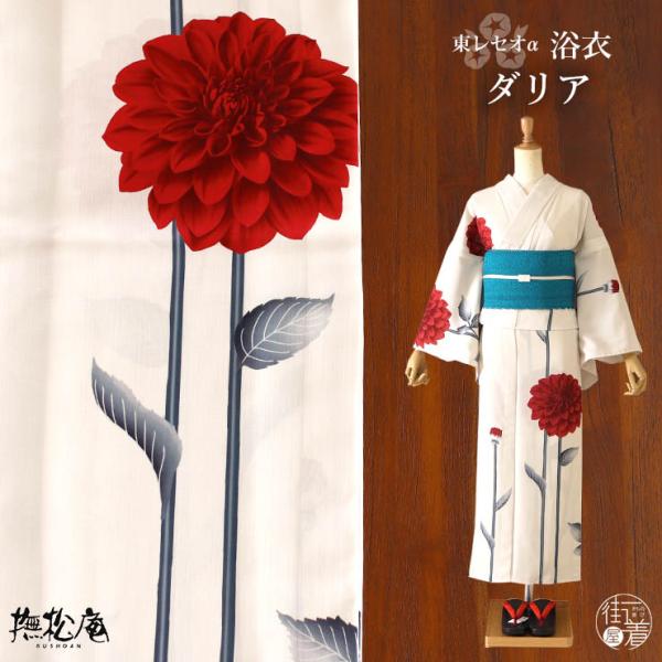 [ 洗える 浴衣 ] ダリア(アイボリー×赤 105-337-151-04)ゆかた バチ衿 セオα CEOα セオアルファ 仕立て上がり プレタ浴衣 プレタ 撫松庵 (ma508)