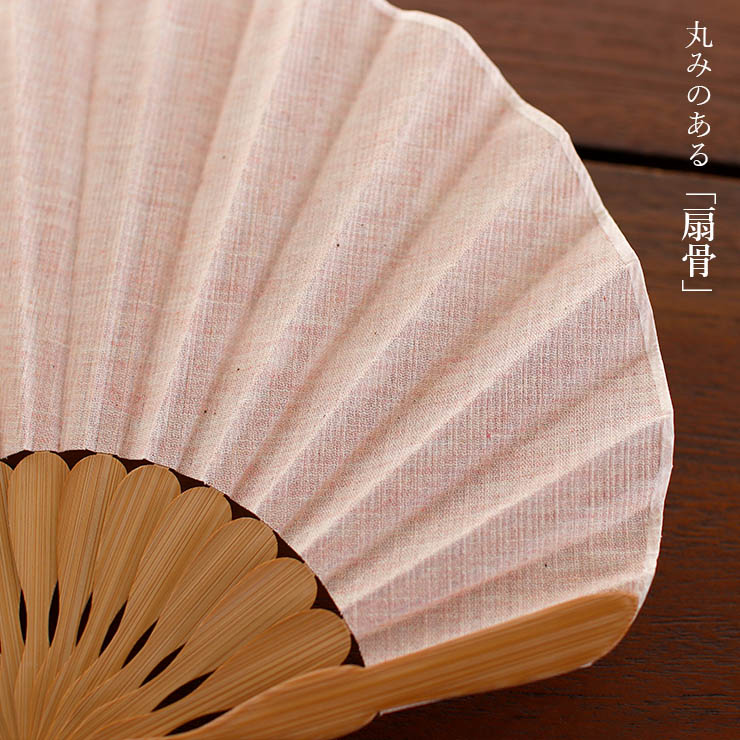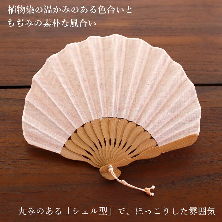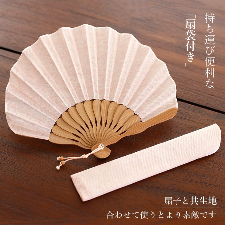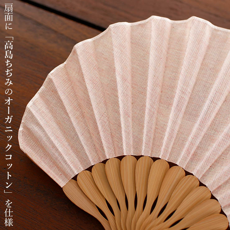 [扇袋セット] 扇子 染骨 ここん(ピンク 1041s) 化粧箱 シェル型 扇袋 飾り紐 無地 高島ちぢみ オーガニックコットン 天然素材 綿 竹 末広 うちわ ma604s