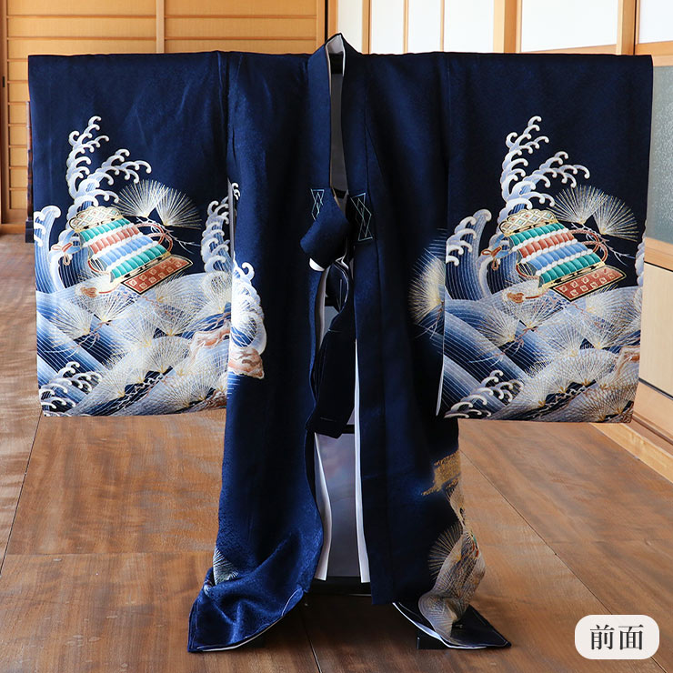 ネイビー 男児 子供 男の子 子供 新生児 宮参り 初参り お正月 祝着 お初着 誕生日 熨斗 贈り物 ラッピング対応 (fu106)