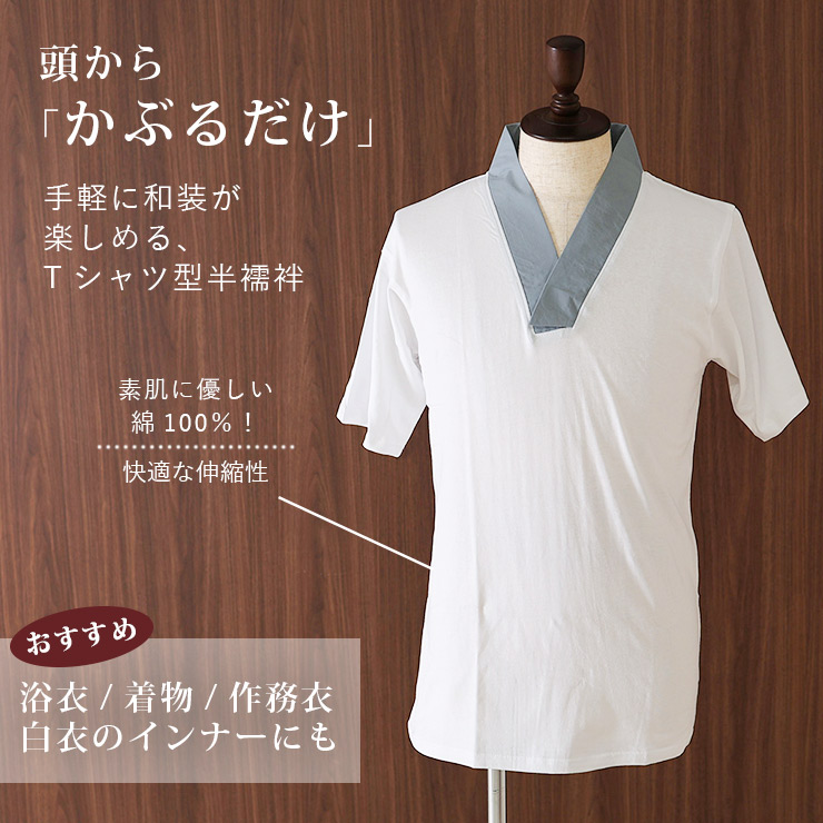 特別価格 [綿100%] メンズ Tシャツ半襦袢 S M L LL 全4色 衿付き肌着 男性用 うそつき インナー Tシャツ 襦袢 肌襦袢 洗える 浴衣 着物 和装 作務衣 白衣 紳士 下着 半衿付き 襟付き コットン100% グレー ネイビー ブラック 紺 黒 灰色 (ym603s)