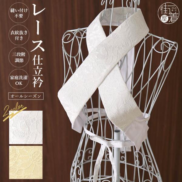 [ 便利アイテム ] 洗える レース仕立衿 レース半衿 ホワイト クリーム 白 淡黄 フラワー えもん抜き 3段階調節 レース 好衿 美容衿 掛衿 (ma603s)