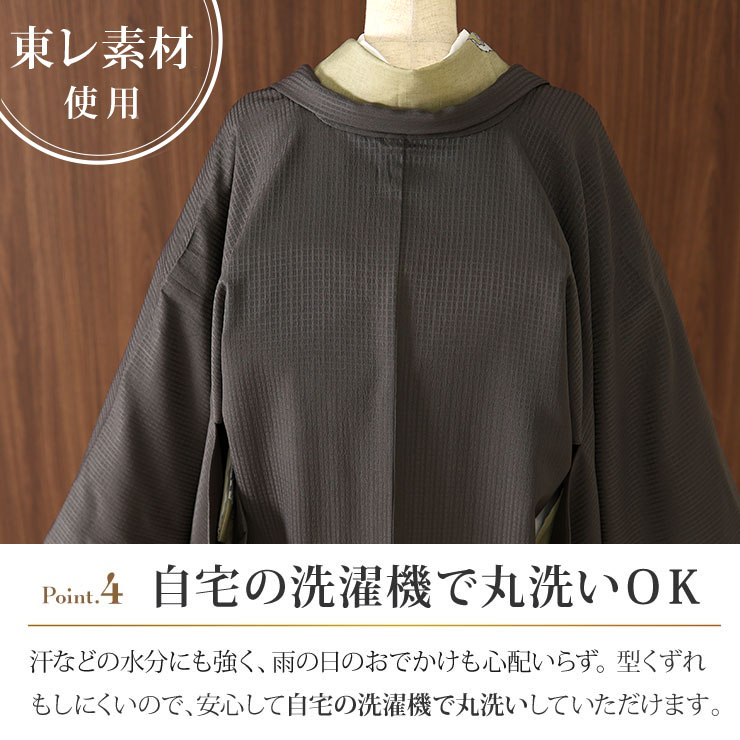 [ 日本製 ] 洗える 長羽織 色無地 格子地紋 利休黒色 袷 洗える 着物 羽織 長はおり 小紋 色無地 訪問着 和装コート 外套 街着屋オリジナル薄紫