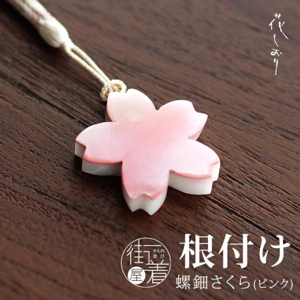 花しおり 根付 螺鈿さくら(ピンク 1176-1016-002) 桜 花 らでん 根付け 帯飾り 和装小物 ストラップ アクセサリー ねつけ 小紋 紬 和装 着物 fj506s
