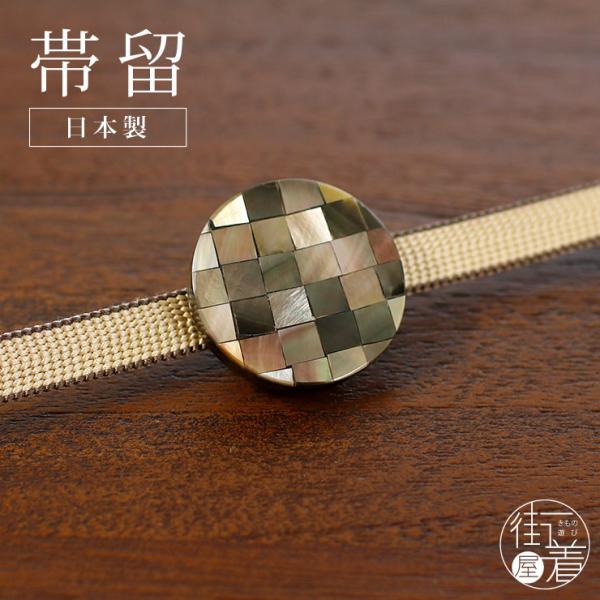 [ 日本製 ] 帯留め 螺鈿 丸に市松(グレー 1173-1503-002) 市松 丸 グレー 古典 伝統 らでん ラデン 帯留 帯どめ 着物 浴衣 和装 小紋 花しおり (ma411s)