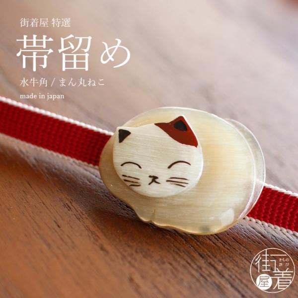 【特別価格】街着屋の「水牛角」帯留め(まん丸ねこ) 猫 手彫り アイボリー ハンドメイド アクセサリー 和雑貨 和小物 レディース 女性用 日本製 (ab501)