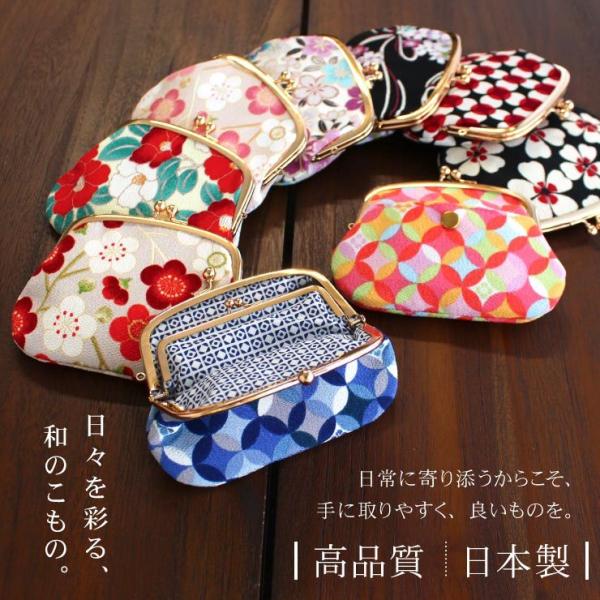 日常を楽しくする高品質の和の小物♪ころんとした形が愛らしい「がまぐち」の小さな財布。味わいのある二越縮緬の和柄テキスタイルを使用し、レトロかわいい雰囲気に。