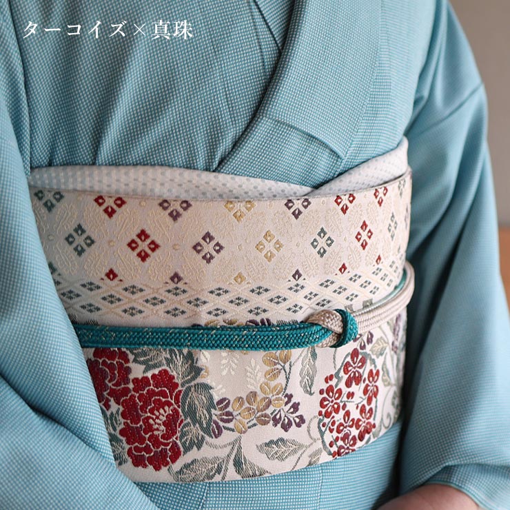 「紐の渡敬」正絹帯締め 誉組 ぼかし染め 5色【日本製】平組紐 おびじめ フォーマル カジュアル 金糸 正絹 シルク 赤 紺 緑 青 ターコイズ 黄 女性 着物(ab502)