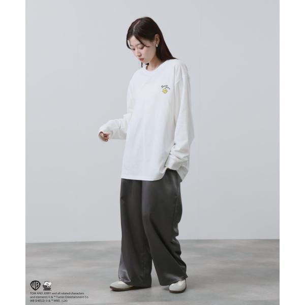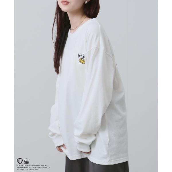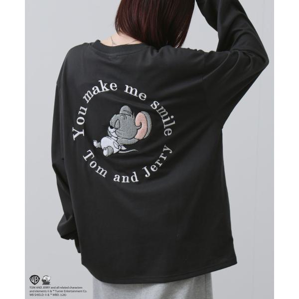 長袖Tシャツ ロンT ビッグシルエット 大きめ ゆったり 綿混 トムとジェリー タフィー キャラクター 刺繍 黒 白 クルーネック カットソー ユニセックス レディース 152141246-248