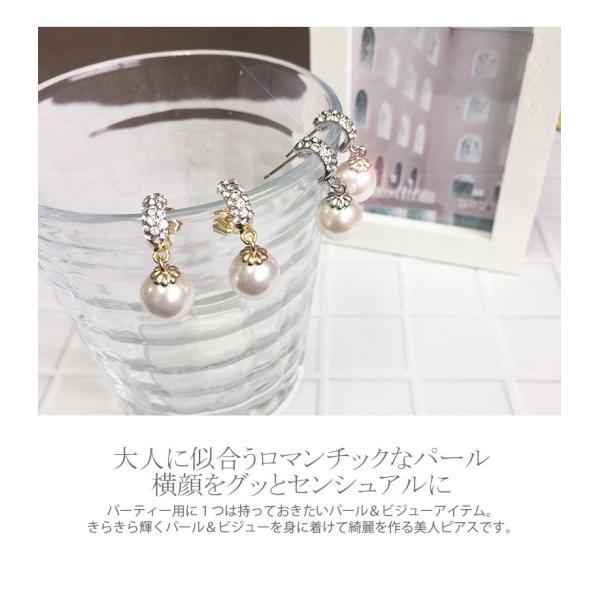 ピアス イヤリング パール ビジュー ウェディング 結婚式 ブライダル 大粒 大ぶり 揺れる 二次会 パーティ お呼ばれ入学式 成人式 卒業式 小物 pi073