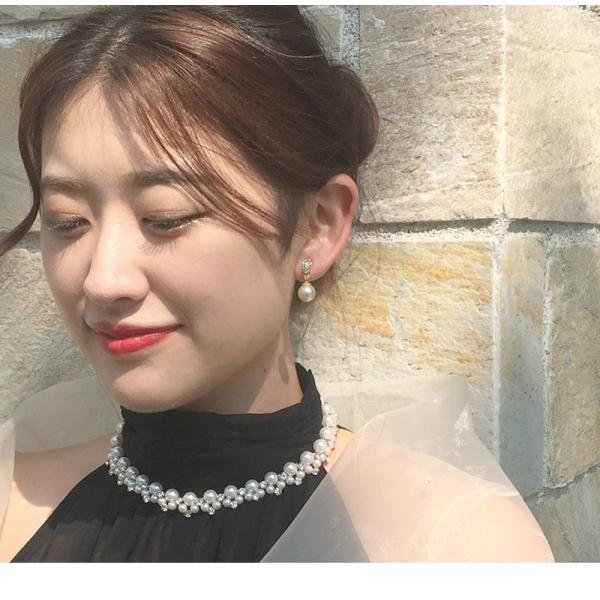 セット ネックレス ピアス イヤリング set チョーカー パール ビジュー シルバー ゴールド フォーマル ウェディング ブライダル 結婚式 およばれ wed004_set