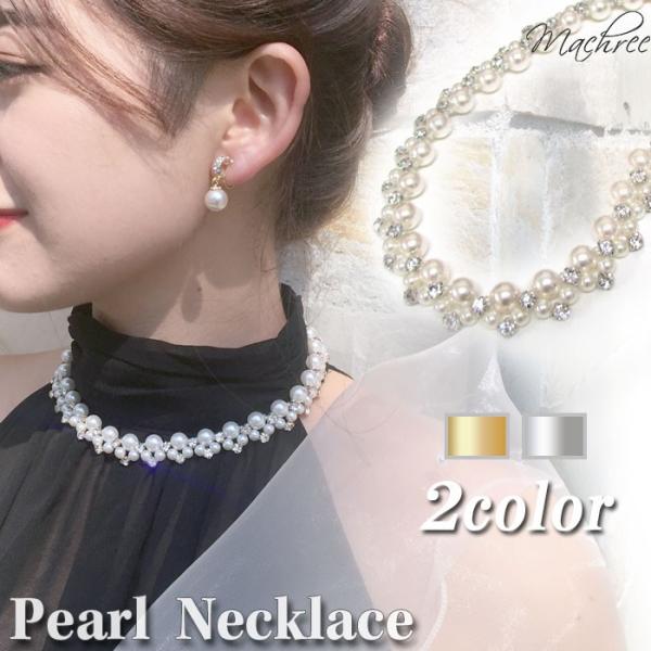 ウエディング 結婚式 ブライダル ネックレス ビジュー パール シルバー ゴールド パーティー フォーマル 二次会 お呼ばれ レディース 入学式 発表会 ne003