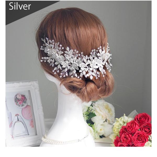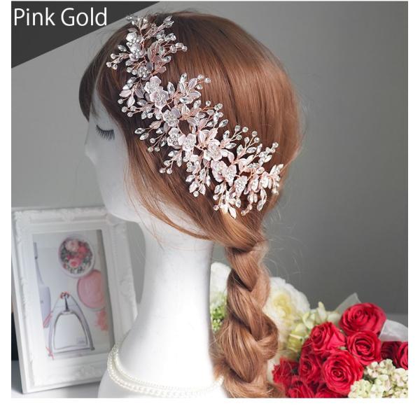 ウェディング ヘッドドレス ヘアアクセサリー 結婚式 ブライダル バックカチューシャ ビジュー 花嫁 大ぶり 二次会 小枝 フラワー 髪飾り 和装 pc106