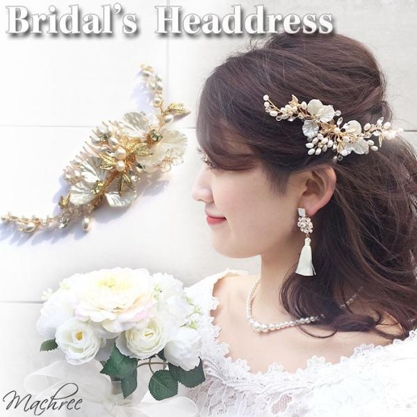 ウェディング ヘッドドレス 結婚式 ブライダル ヘアアクセサリー コーム 小枝 パール ビジュー 花 フラワー ゴールド 髪飾り二次会 お呼ばれ パーティ co019