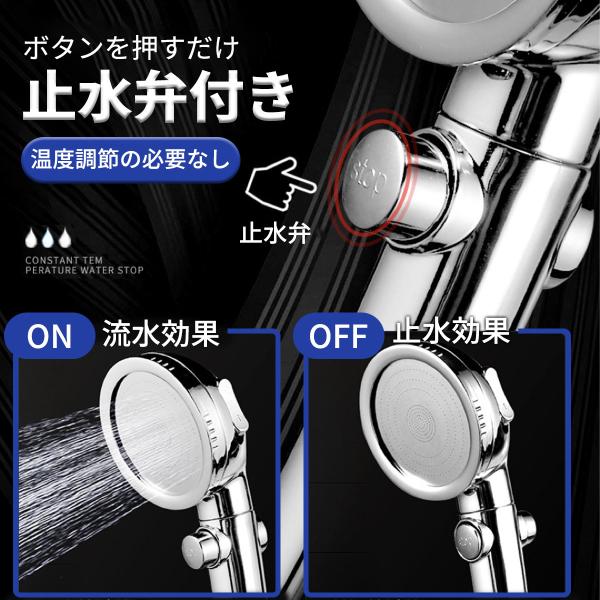 シャワーヘッド 節水 浄水 アダプター付き 水漏れ防止 テープ5m付き 3段階 ストップボタン 高水圧 水圧調整 頭皮 毛穴汚れ 交換フィルター付き 鍍金加工