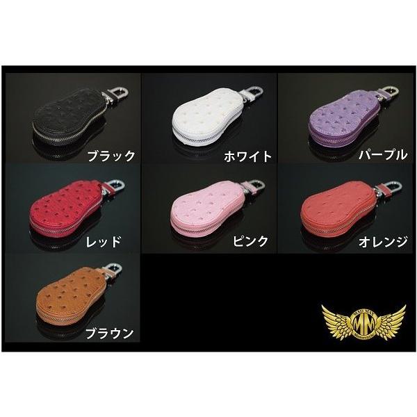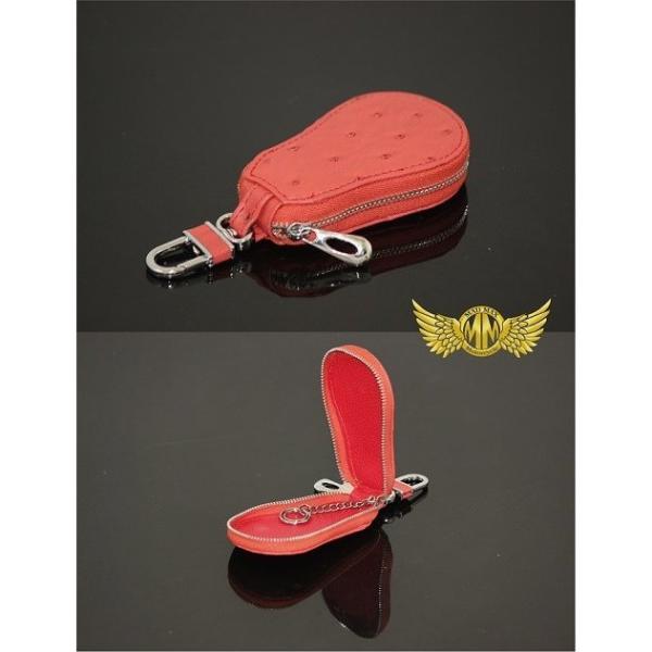 メール便送料無料!!スマートキーケース オーストリッチ風 レザー カルビナ付き 各色